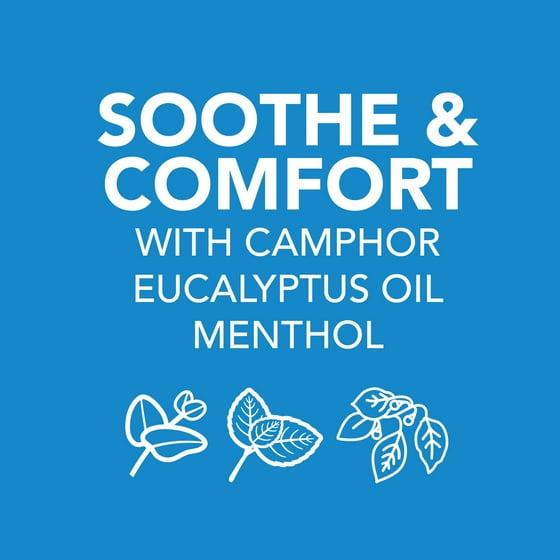 Camphor 4.8% (Cough Suppressant and Topical Analgesic) Menthol (Cough Suppressant and Topical Analgesic) Eucalyptus Oil (Cough Suppressant)