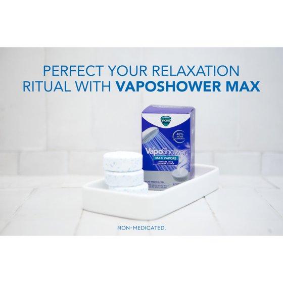 - TRANSFORM YOUR SHOWER. Vicks VapoShower MAX tablets infuse into the shower steam so you can breathe in soothing non-medicated Vicks Vapors anytime you shower, whether it's during cold and flu season or you just need a spa-like shower.
