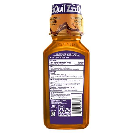 - GREAT TASTE: Delicious Chamomile Honey flavored, you'll look forward to falling asleep with ZzzQuil Soothing Sleep liquid, whether you're at home or traveling