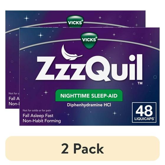 (2 pack) Vicks ZzzQuil Nighttime Sleep Aid Tablets, Diphenhydramine HCI 25mg Sleeping Pills, 48 Count