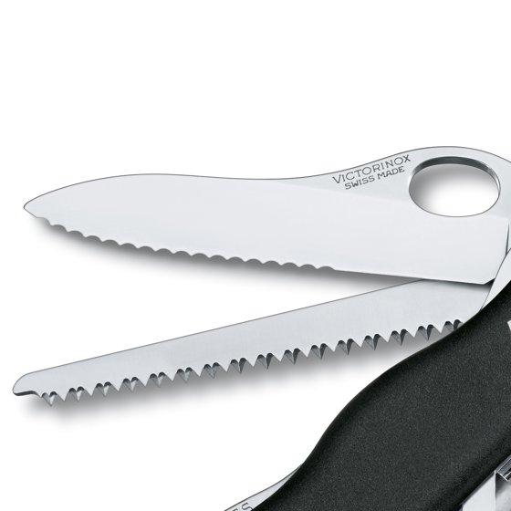 Victorinox One Hand Trekker Lockblade Swiss Army Knife, 12 Function Pocket Knife with Large Serrated Blade, Wood Saw and Screwdriver - Black, Blister