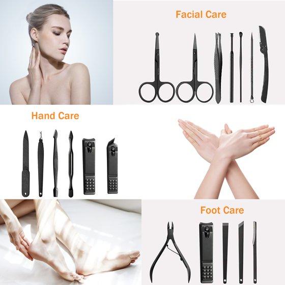 VIIWII manicure set worth having it.Our 18pcs Manicure Pedicure Set is made of professional surgical grade stainless steel, which allows for safe sterilization, prevents corrosion and minimize risk of infections. Includes face, hand and feet care tool, one set will meet all your personal care needs in daily life.