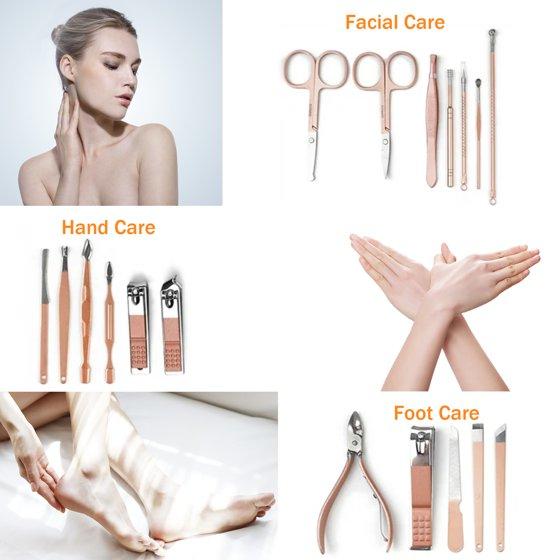 VIIWII manicure set worth having it.Our 18pcs Manicure Pedicure Set is made of professional surgical grade stainless steel, which allows for safe sterilization, prevents corrosion and minimize risk of infections. Includes face, hand and feet care tool, one set will meet all your personal care needs in daily life.