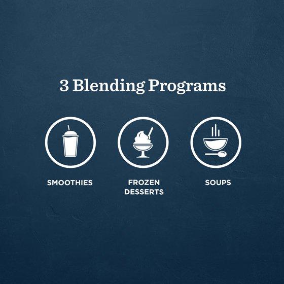 - Three Blending Programs: Three automatic Blending Programs for Smoothies, Frozen Desserts, and Soups