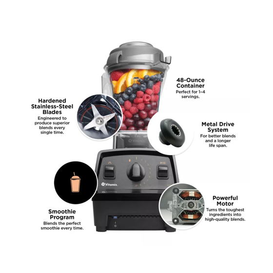 The new Vitamix Propel® Series 410 combines power and convenience for everyday blending that’s always easy and consistently delicious. With Variable Speed Control and Pulse features (for control and precision), self-cleaning in just 60 seconds, and a preset Smoothie program, the Propel 410 has everything you need to make delicious, whole-food drinks, snacks, and meals. It also comes with a 48-ounce container that’s perfect for 1–4 servings and a 5-year full warranty for peace of mind. Because Vitamix blenders last up to 10x longer than an average blender, you'll be blending your best life for a long, long time.