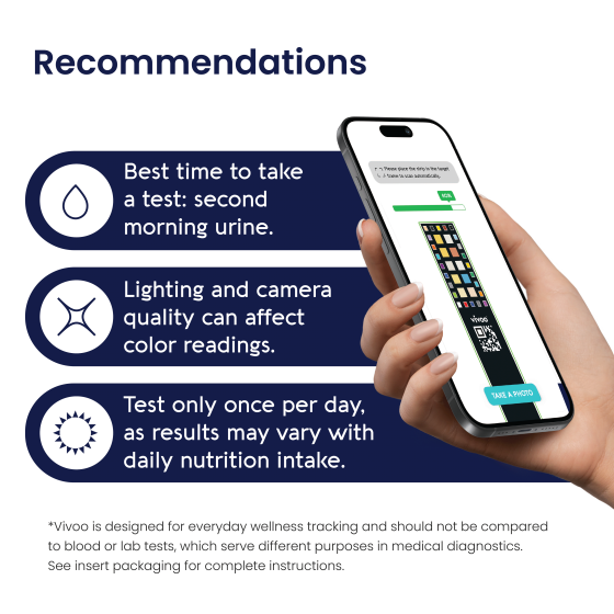 - PERSONALIZED ADVICE FROM EXPERTS - Our new technology analyzes your urine; provides nutritional & lifestyle advice, unique to your results, all in just 90 seconds! Unlike other urine test strips, Vivoo uses advanced machine learning.