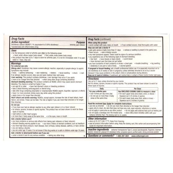 Voltaren Arthritis Pain Relief Gel provides powerful, original prescription strength relief for arthritis pain in a non-greasy, fast-absorbing topical formula containing diclofenac sodium 1% (NSAID) this medicated anti-inflammatory gel is clinically proven to relieve joint stiffness and reduce pain directly at the source the twin value pack includes two 3.53 ounce tubes for a total of 7.06 ounces allowing convenient use on multiple joints such as hands wrists elbows knees ankles and feet designed for daily treatment this over-the-counter alternative to pills helps improve mobility and comfort so you can keep moving with less pain trusted worldwide Voltaren combines advanced pain relief with easy targeted application for consistent everyday support.