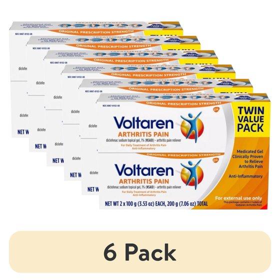 (6 pack) Voltaren Arthritis Pain Relief Gel, Diclofenac Sodium 1% (NSAID), Original Prescription Strength, Twin Value Pack, 2 Tubes 3.53 oz Each (7.06 oz Total)