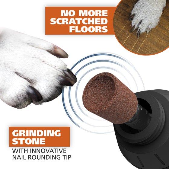 Safely grind and smooth your pets nails with Wahl's Grind and Smooth 2-Speed battery Pet Nail Grinder. This grinder comes with a protective cap that allows you to file each nail without accidentally rubbing the grinding stone against your pets paws. The innovative grinding stone shape not only allows you to file your pets nails, but the rounded top design also allows you to round your pets nails for a smooth even finish. This powerful and quiet tool is battery operated for cordless use (4 AA Alkaline Batteries Included) and includes easy step by step instructions on how to trim your pets nails.