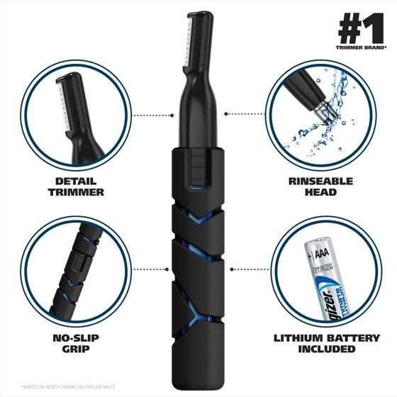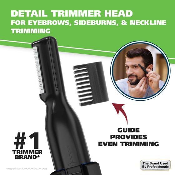 - Detail Head for eyebrows, sideburns, and necklines, use with trimming guide for an even trim