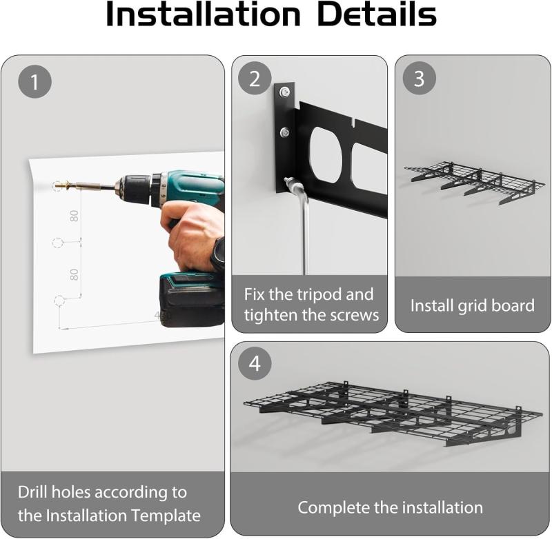 - Fast and Easy Installation--Featuring a modular design for quick assembly, installation is simple-just use the included positioning paper to mark, mount the brackets, install screws, and snap the grid shelf into place. Fit for concrete, wood, and brick walls (not recommended for metal walls), installation can be completed in minutes.