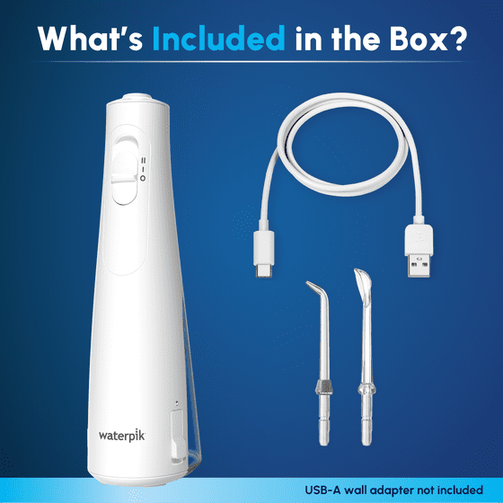 - IN THE BOX: Waterpik Cordless Enhance 3000 water flosser in White (WF-21), 1 Precision flossing tip (JT-450E), 1 Tongue Cleaner tip (TC-100E), USB-C to USB-A charging cable (wall adapter NOT included) (Original version includes 2 Waterpik Precision tips for general use; newer version includes 1 Precision tip and 1 Tongue Cleaner tip - you may receive either product as the item transitions to the newer version)