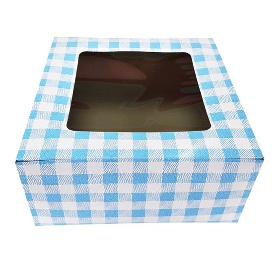 - 12" x 12" x 6" Blue Plaid Cake Box with Window