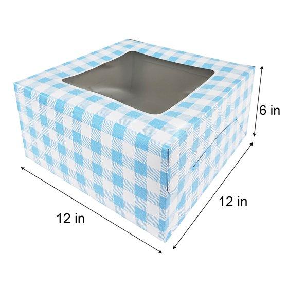 Way To Celebrate 12" x 12" x 6" Blue Plaid Cake Box with Window (1 Piece)