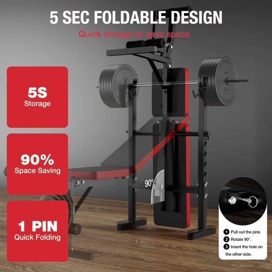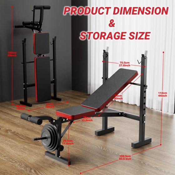 - 【Foldable to save 90% of space】You don't have to worry about the weight bench taking up most of the space. After use, you can remove the locking pin, fold it up easily and put it in the corner, saving space and keeping the room tidy. (Note: bar and weight are not included).