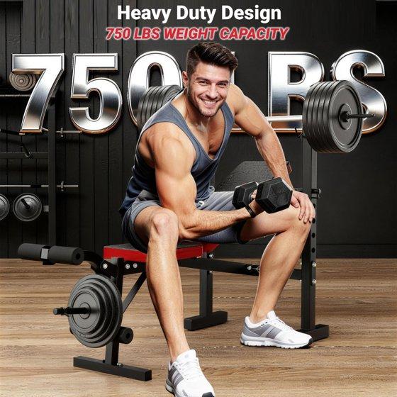 Weight Bench Set,Blacksmith Foldable 750lbs 5-In-1 Workout Bench Press with Squat Rack and Leg Extension & Curl,Gym Exercise Equipment Bench for Full Body Home Gym