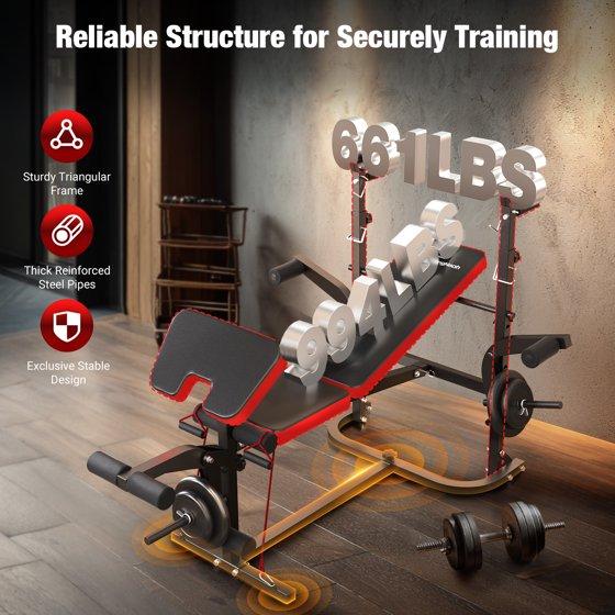Weight Bench,Blacksmith 6-in-1 Foldable 800lb Capacity Weightbench Set,Workout Bench Press System for Full Body Home Gym,Black