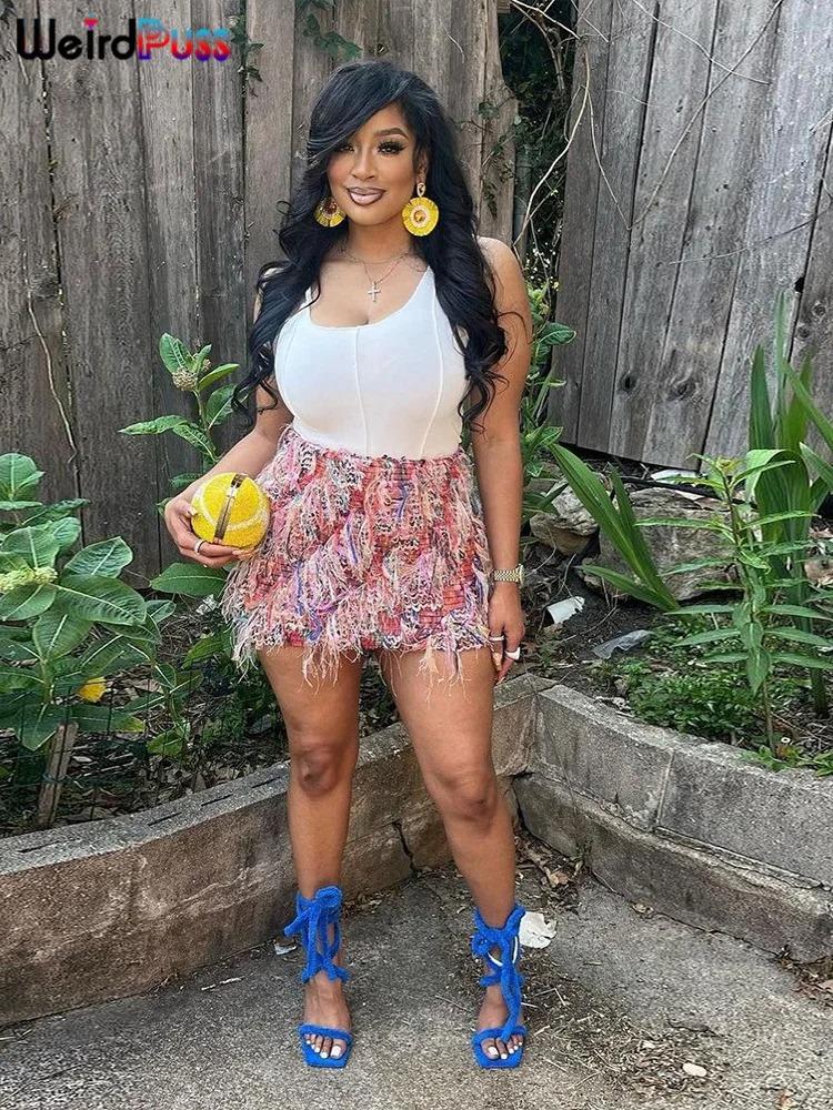 Weird Puss Colorful Tassel Skirts Peach Hip Women Thin Knit Wild Sexy Midnight Summer Trend Stretch Skinny Streetwear Bodycon
