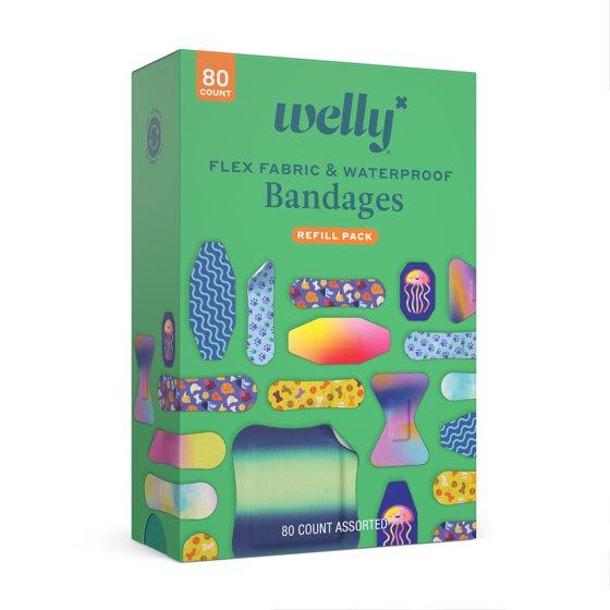 Welly Flex Fabric Bandages, Assorted Pattern Family Pack, 80 Count