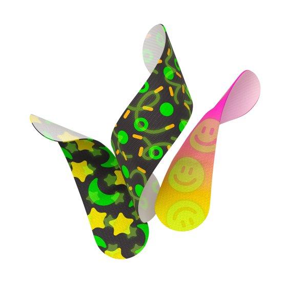 - 3 unique glow-in-the-dark patterns in 2 kid-friendly sizes that stay on through play time