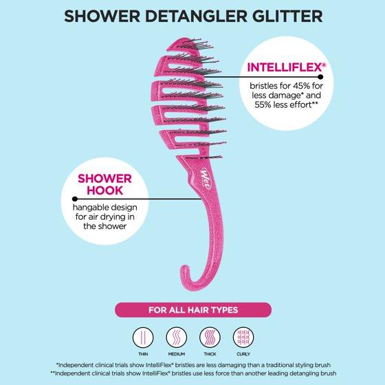 Meet theShower Detangler, a shower-friendly pink hair brush that lets you dive into a world of hassle-freehair care with the Wet Brush Shower Hair Brush! Its exclusive ultra-soft IntelliFlex bristles glide through tangles and knots effortlessly, whether your hair is thick, curly, wavy, fine, or straight.