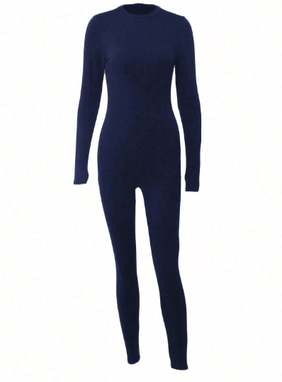 Women Solid Color Long Sleeve Jumpsuit, Casual Autumn Fall Cloth For Women