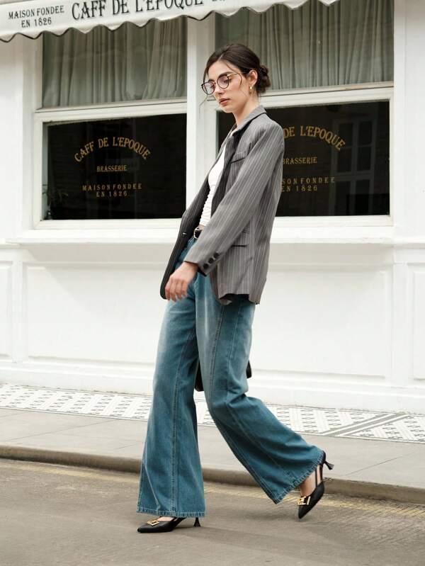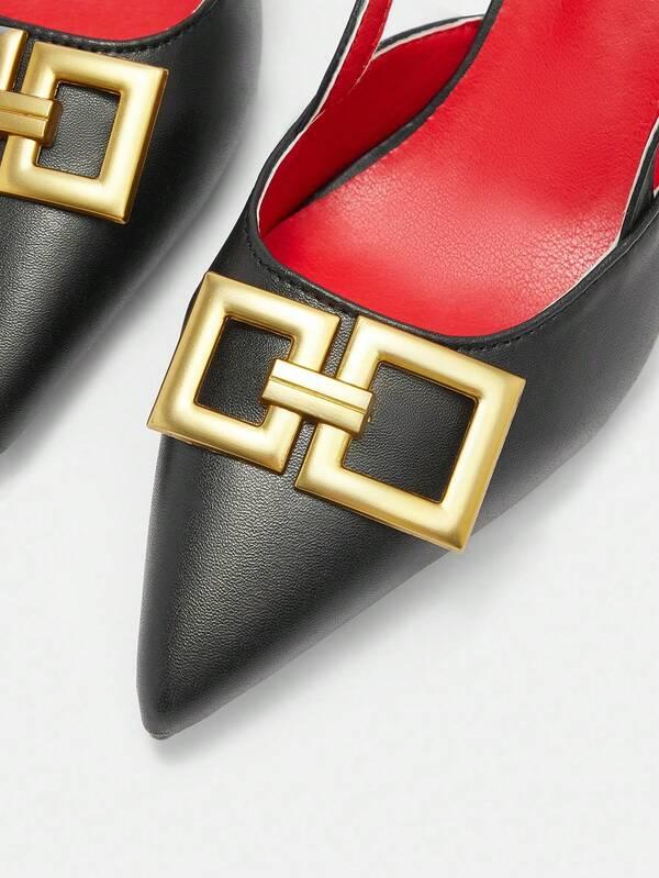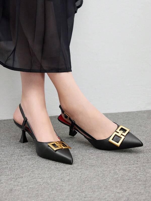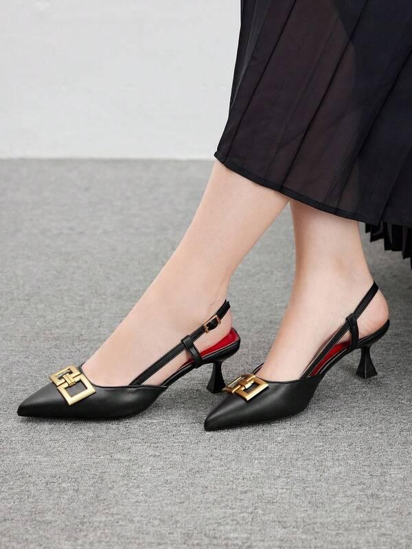 Women's Pointed Toe Minimalist High Heels With Metal Decoration, Casual Everyday Wear