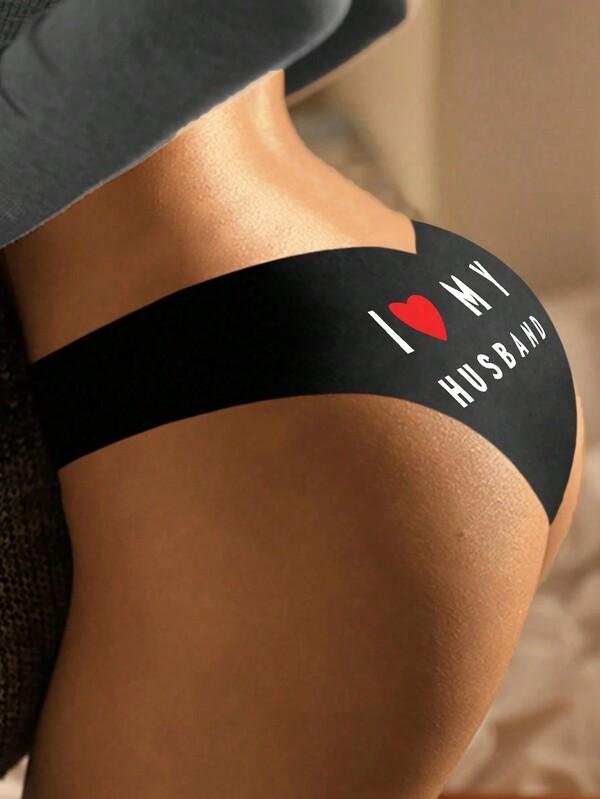 Women's Sexy Panties Random Style Heart Graphic Printed Lingerie Briefs Seamless Low Waist Ice Silk Solid Lingerie Comfy Female Underwear