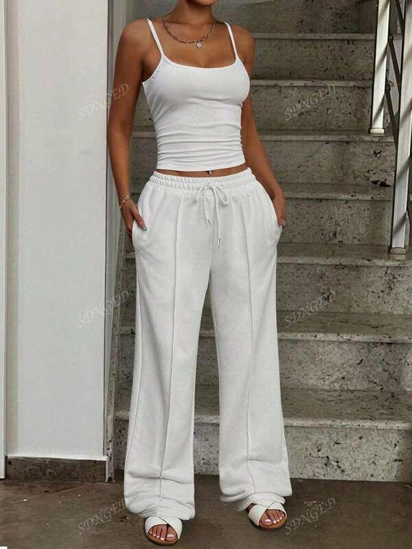 Women's Solid Color Spaghetti Strap Minimalist Top And Pants Casual Set
