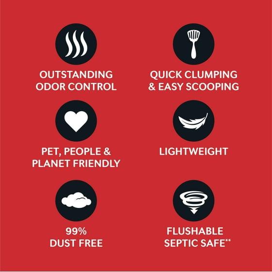 - FLUSHABLE - SEPTIC SAFE — Skip the trip to the trash with a lightweight litter that’s tested and proven flushable* and safe for septic and sewer systems!