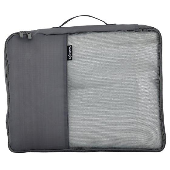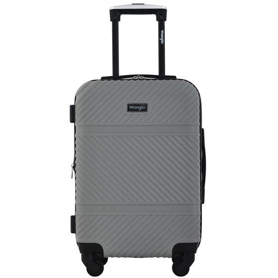 Wrangler 4 Piece Expandable Hardside Spinner Luggage Set with Packing Cubes, Sharkskin Grey