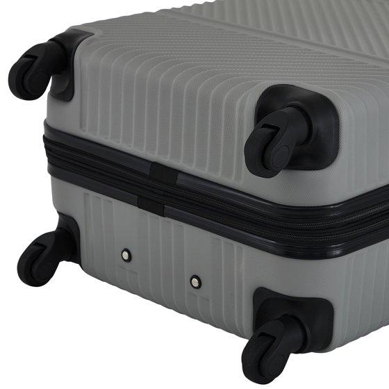 - Set includes a 25” checked rolling suitcase, a 20” rolling carry-on, and a 15” and 12” packing cube
