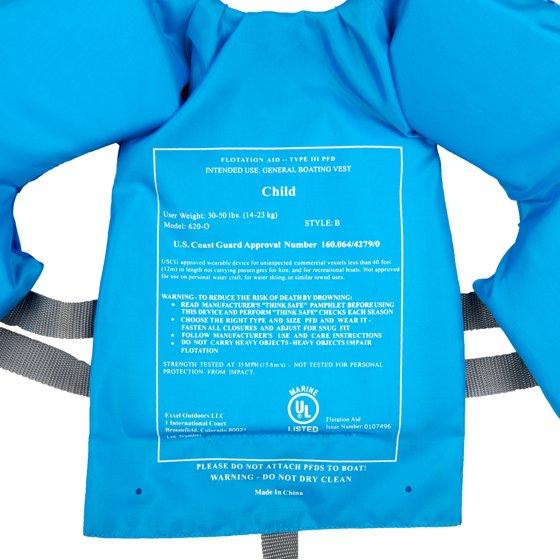 X2O Universal Child Open-Sided Life Vest, 30 lbs. – 50 lbs., Blue: