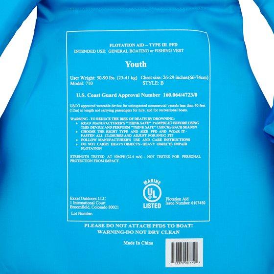 X2O Universal Youth Open-Sided Life Vest and Jacket, 50lbs - 90lbs, Blue Ocean Coral, Unisex