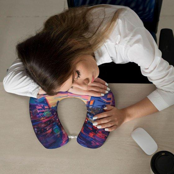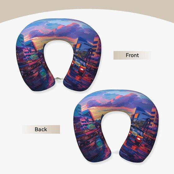 Xecao Taxi Colorful Town Print Memory Foam Cervical Neck Pillow Versatile U-Shaped Pillows for Home,Office,Camping,Travelling,Soft Washable Cover