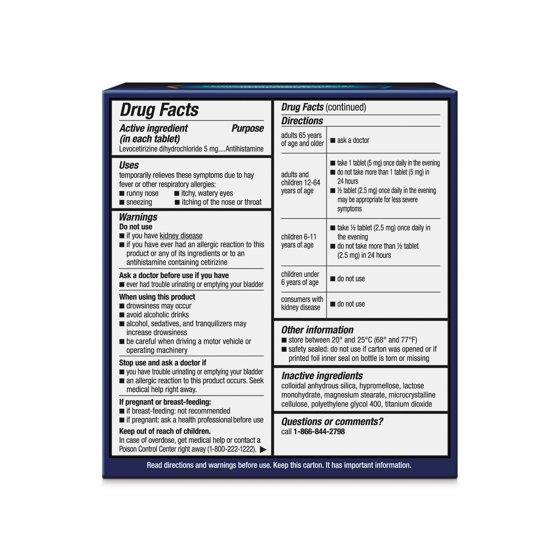 Xyzal Allergy Pills, 24-Hour Allergy Relief, 55-Count, Original Prescription Strength
