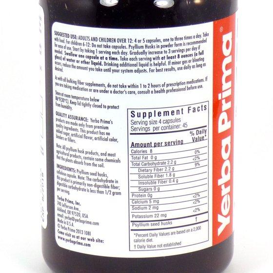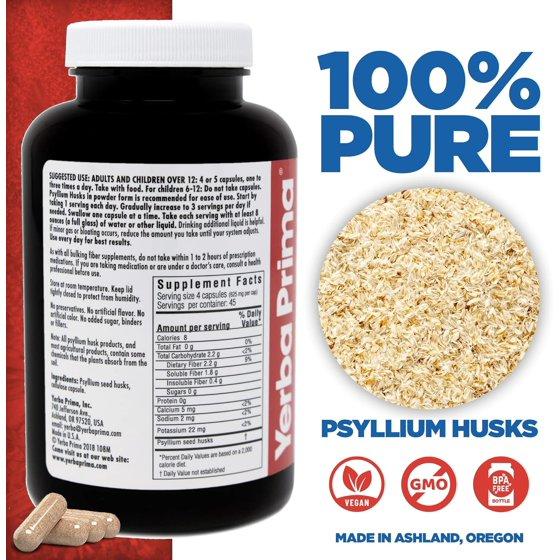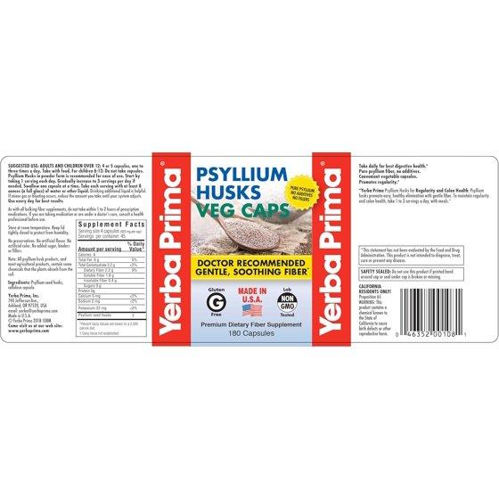 Great For Weight Loss & Maintenance Doctor Recommended Gentle, Soothing Fiber Gluten Free Non GMO Project Verified Premium Dietary Fiber Supplement Take daily for best digestive health. Pure psyllium fiber, no additives. Convenient vegetable capsules. Great fiber supplement for low carb, high protein and gluten-free diets. Promotes regularity. Great for weight loss and weight maintenance. Yerba Prima Psyllium Husks for Regularity and Colon Health: Psyllium husks promote easy, healthy elimination with gentle fiber. Psyllium husks provide gentle fiber to soothe and normalize the bowel when there is discomfort. Yerba Prima Psyllium Husks for Weight Maintenance: Dietary fiber plays an important role in weight loss and maintaining healthy weight. High fiber foods like psyllium husks help promote satiety (a feeling of fullness). Yerba Prima Psyllium Husks for Heart Health: To help support heart health, take 1 serving a day, with meals.