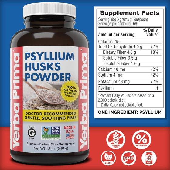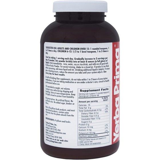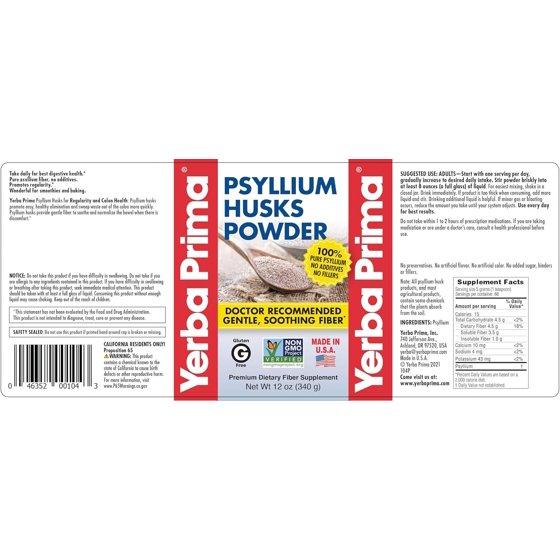 Psyllium Husks Powder - 12 oz PSYLLIUM POWDER: All-natural fiber supplement for promoting regularity and supporting heart health. It is most effective when used everyday, and can be used as long as desired. FOR REGULARITY: Psyllium husks promote easy, healthy elimination and sweep waste out of the colon more quickly. To maintain regularity and speed waste removal, take 1 to 3 servings a day, either with or between meals. PURE PSYLLIUM: Just one ingredient because you deserve high-quality fiber. THE BETTER CHOICE: Non-GMO, No Artificial Flavors or Colors. No Added Sugar.. No Binders. No Fillers. Made with quality ingredients for better results. TRUSTED FOR 40 YEARS: Yerba Prima has been offer premium nutritional supplements since 1980.