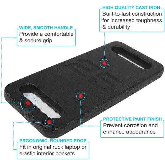 - ERGONOMIC, ROUNDED EDGE: Each Ruck Weight is specially designed with four rounded edges to fit into standard laptop compartments or elastic interior pockets. Plus, the smooth-edge design protects the floor and surrounding equipment from damage.