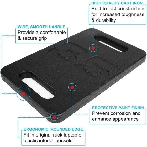 - ERGONOMIC, ROUNDED EDGE: Each Ruck Weight is specially designed with four rounded edges to fit into standard laptop compartments or elastic interior pockets. Plus, the smooth-edge design protects the floor and surrounding equipment from damage.