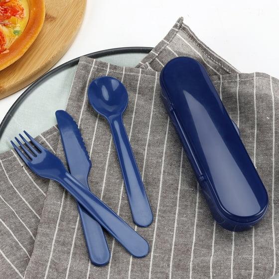 (7 pack) Your Zone 4 Count Blue Plastic Utensil Set with Fork, Spoon, Knife, and Travel Container