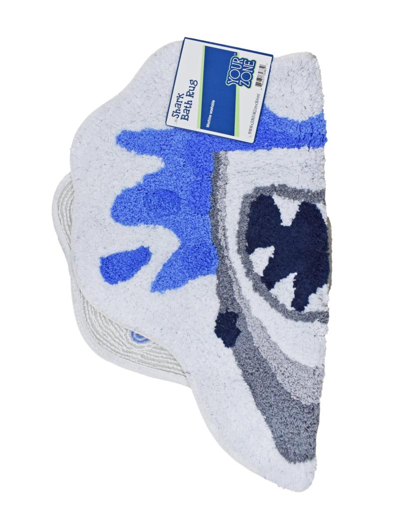 Your Zone Blue & Gray Shark Shaped 19 x 23 inch 100% Cotton Bath Rug