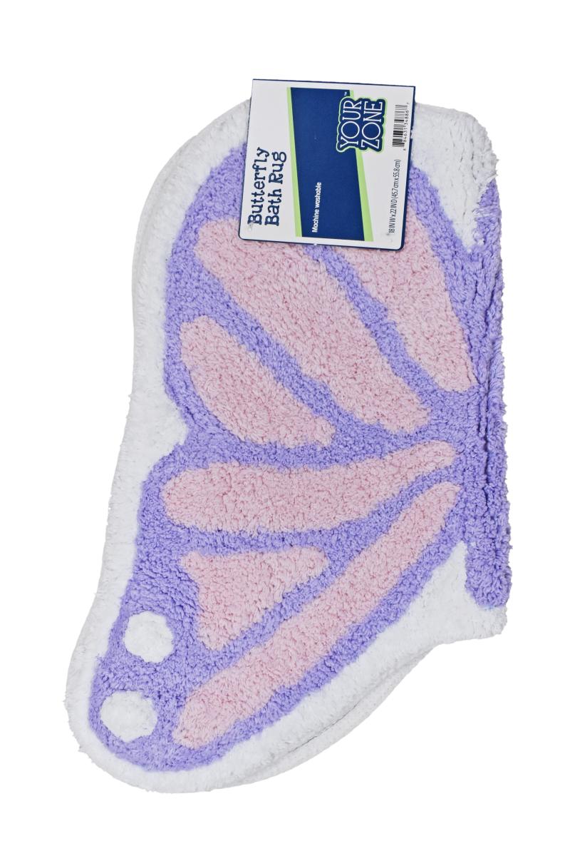 Your Zone Pink & Purple Butterfly Shaped 18 x 22 inch 100% Cotton Bath Rug