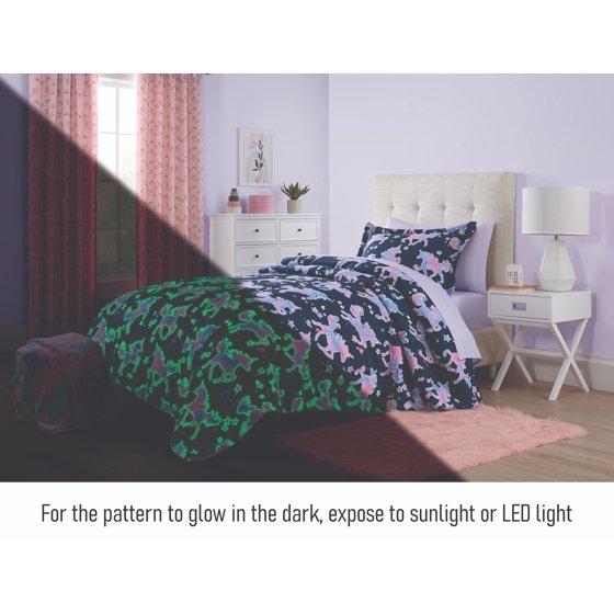 - Your Zone Glow in the Dark 5-Piece Unicorn Twin Bedding Set for Kids with Fabric Storage Bag, Twin