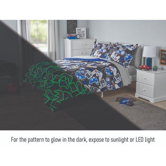 - Your Zone Glow-in-the-Dark 7-Piece Gamer Bedding Set for Kids with Fabric Storage Bag, Full