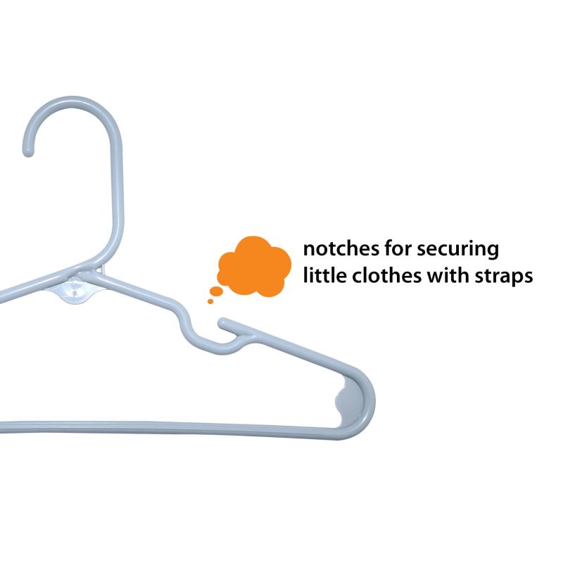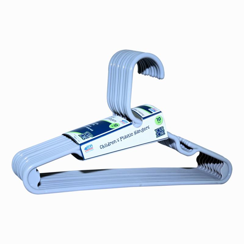 Your Zone Kids' Clothing Hangers, Gray, 10 Count, Fits Sizes Up to 8, Durable Plastic