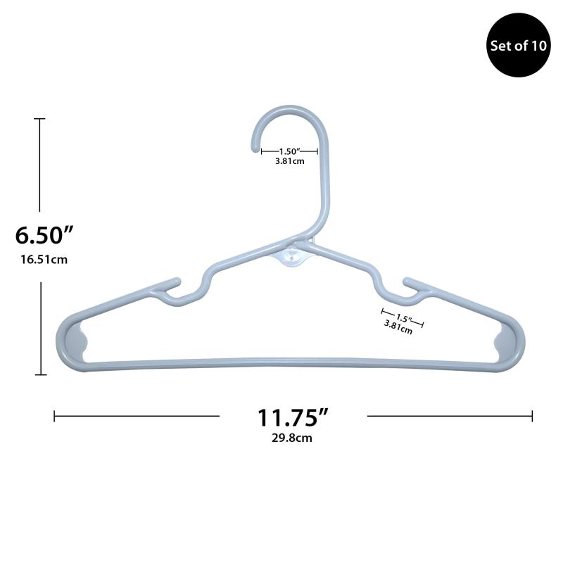 - Includes 10 plastic hangers