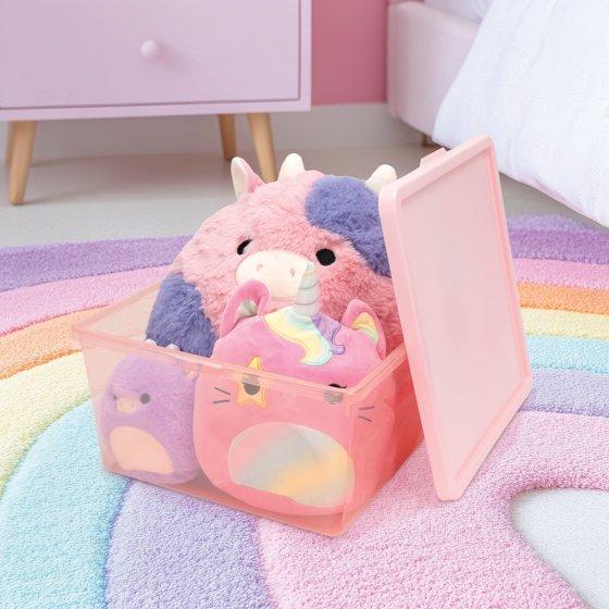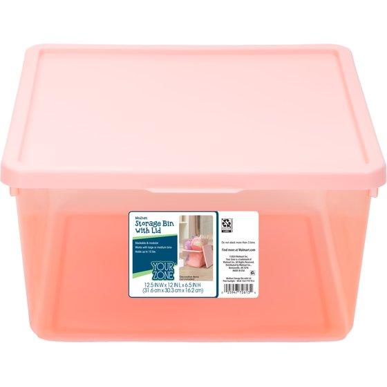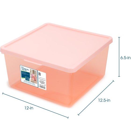 Your Zone Kids Medium Tinted Clear Plastic Stacking Storage Bin with Lid, Pink, 12 in x 12.4 in x 6.3 in