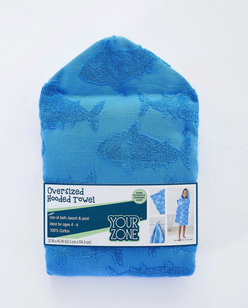 Your Zone Kids Blue Shark Cotton Hooded Towel, Age 2-4, Great for Kids after Bath, Beach and Pool