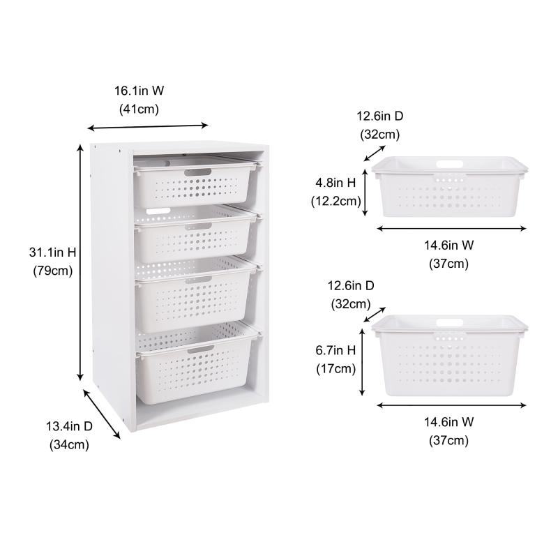 - Product dimensions: 16.1in W x 13.4in D x 31.1in H, Small bin: 14.6W x 12.6D x 4.8H,Big bin: 14.6W x 12.6D x 6.7H